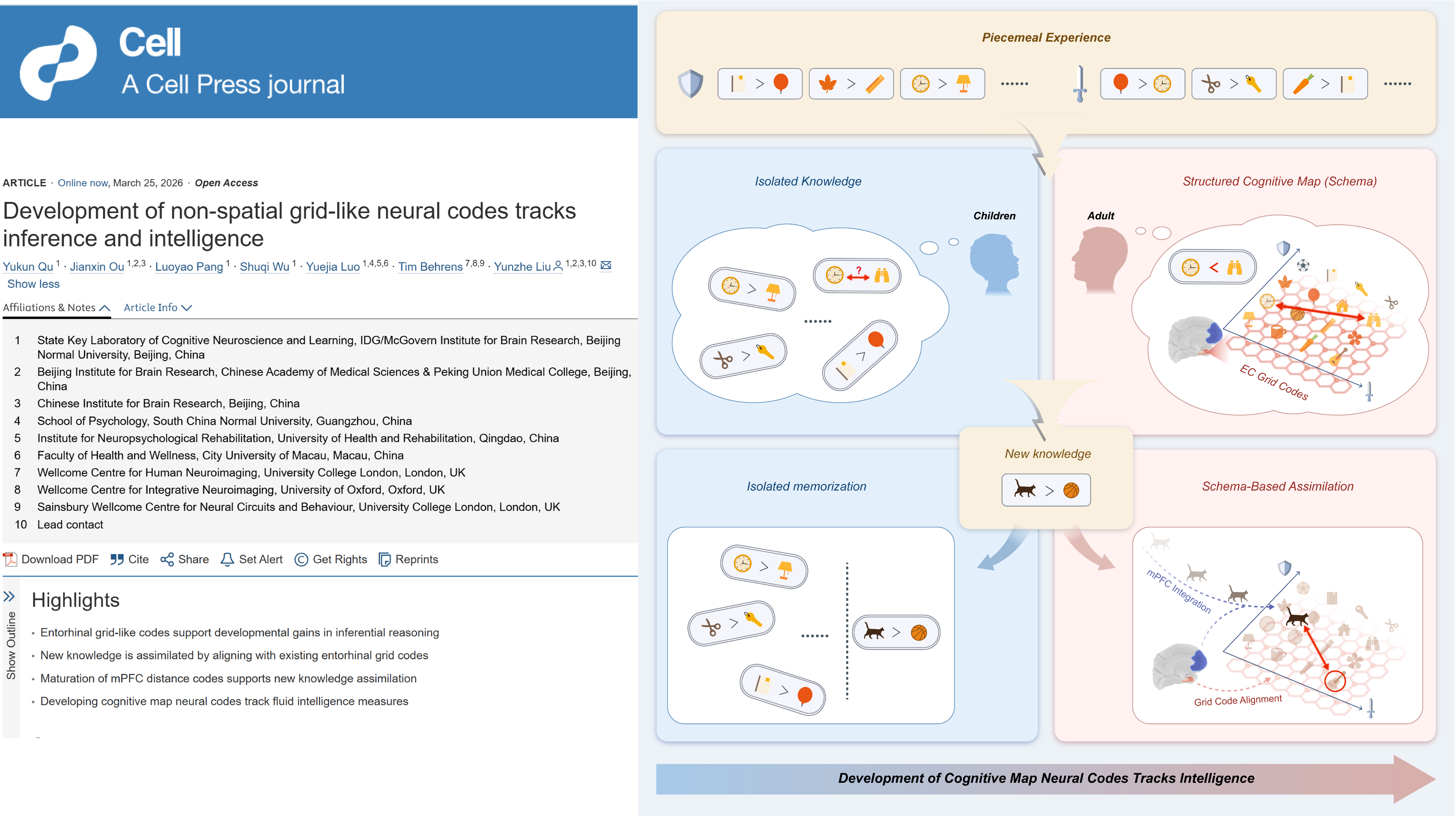 Mar 26,2026柳昀哲课题组于《Cell》发表重要研究揭示人脑概念认知地图的发育机制3月25日,北京师范大学心理学部、IDG/麦戈文脑科学研究院柳昀哲课题组在《细胞》(Cell)在线发表研究论文“Development of Non-Spati...